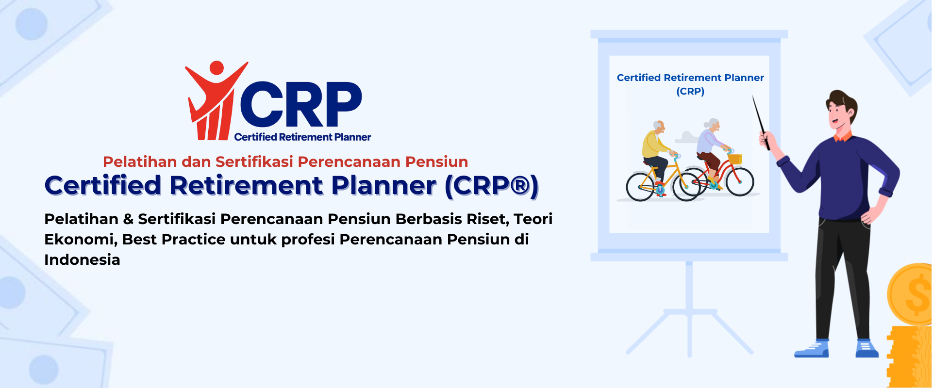 Program Certified Retirement Planner (CRP®) dirancang untuk membekali Anda dengan keahlian dalam strategi perencanaan pensiun, masa pensiun, manajemen risiko dan asuransi serta Konsep toleransi risiko berbasis perencanaan keuangan dana pensiun. Konsep ini dikembangkan dari disertasi Doktoral Ilmu Ekonomi Manajemen Keuangan oleh Dr. Eko Usriyono, SE, MM, yang berhasil menjadi lulusan terbaik Universitas Diponegoro tahun 2023, Dengan CRP®, Anda tidak hanya mengikuti pelatihan tapi juga mendapatkan sertifikasi CRP, yang berpotensi menjadi konsultan, speaker dan trainer perencanaan pensiun terpercaya yang membantu keluarga dan perusahaan agar pensin mandiri dan sejahtera.