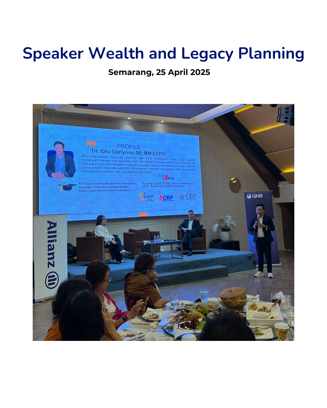 | 13.00 – 13.45 | 🏛 Modul 4 – Estate Planning & Economic Family Value | – Konsep EFV: warisan bukan hanya harta – Warisan, hibah, dan wasiat – Hukum waris: Islam, KUH Perdata, Adat – Case Study |