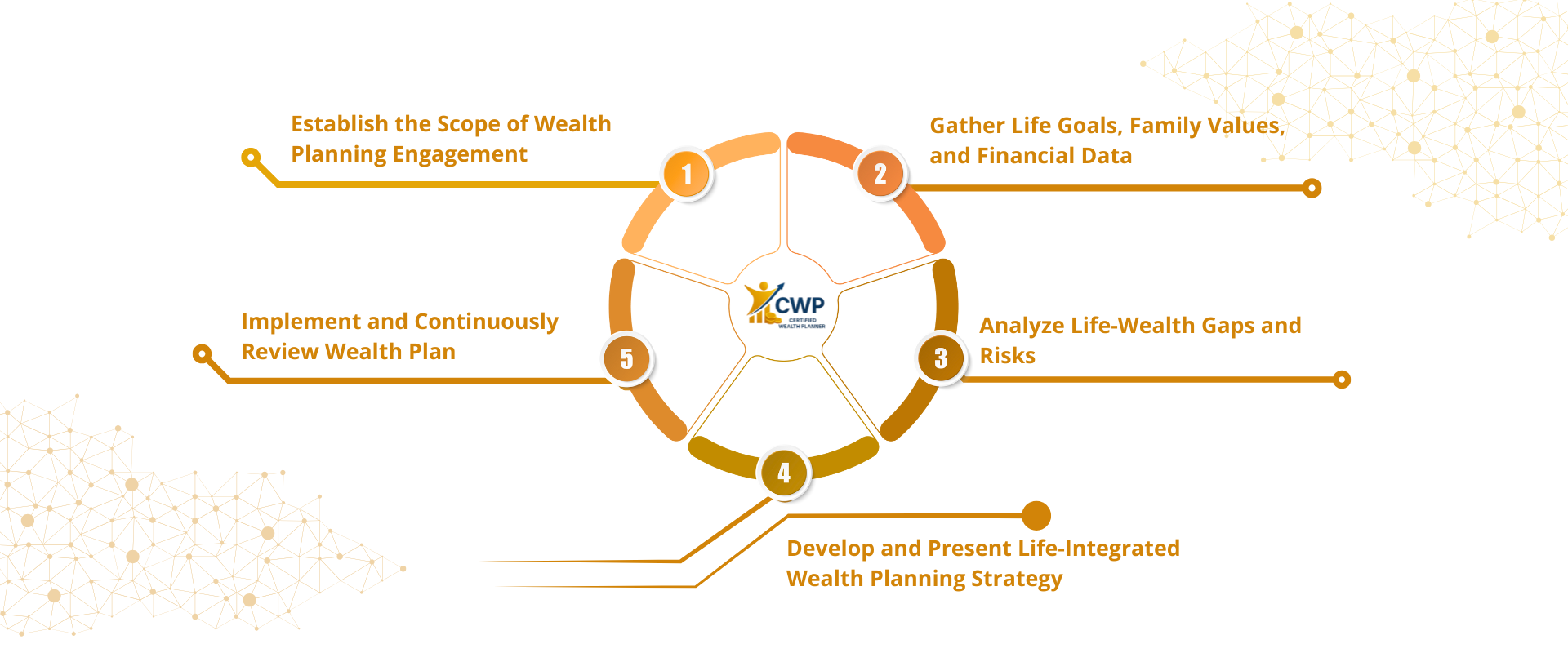 Standar ini mengintegrasikan pendekatan Life-Integrated Wealth Planning (LIWP), yaitu penyatuan antara perencanaan keuangan, perlindungan risiko, manajemen investasi, perencanaan warisan, nilai-nilai keluarga, keharmonisan antar generasi, serta edukasi pengelolaan kekayaan bagi generasi penerus. Melalui pendekatan ini, CWP® membantu klien membangun kekayaan bukan sekadar untuk hari ini, tetapi juga untuk menciptakan kesinambungan kehidupan, stabilitas finansial, dan warisan nilai hidup yang bermakna lintas generasi.
